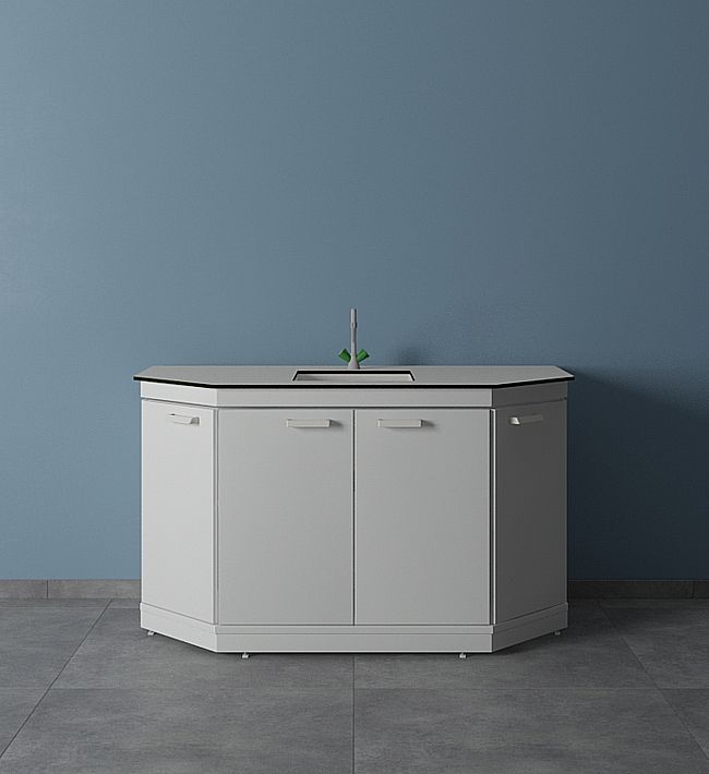 При покупке лабораторной мебели нужно учесть выводы для подключения воды, электричества, вытяжной вентиляции. Эргономично расставить вытяжные шкафы и островные столы.