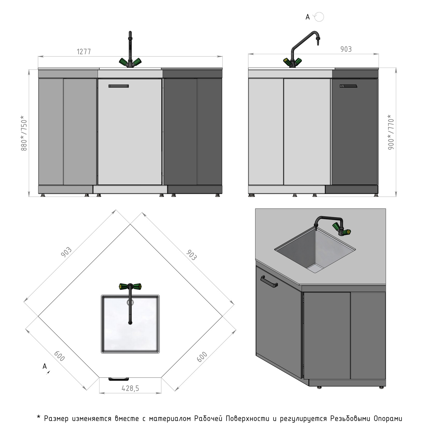 - Прочный металлический каркас с полимерным покрытием серого цвета с регулируемыми опорами 0-30 мм;