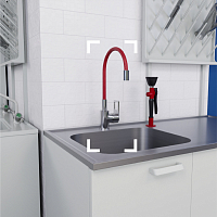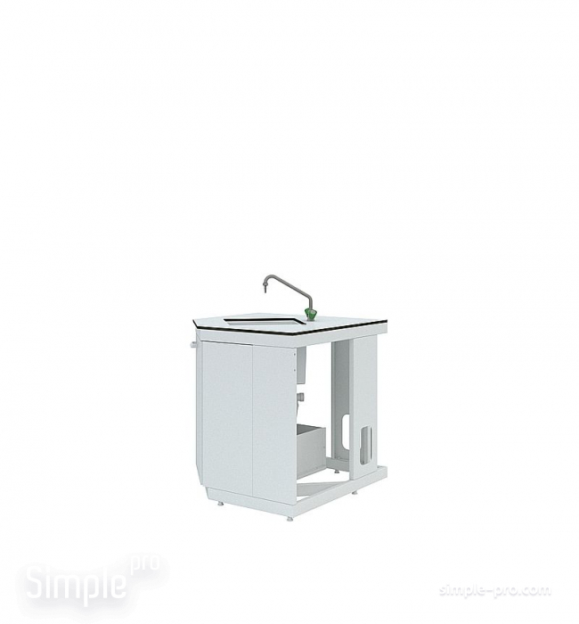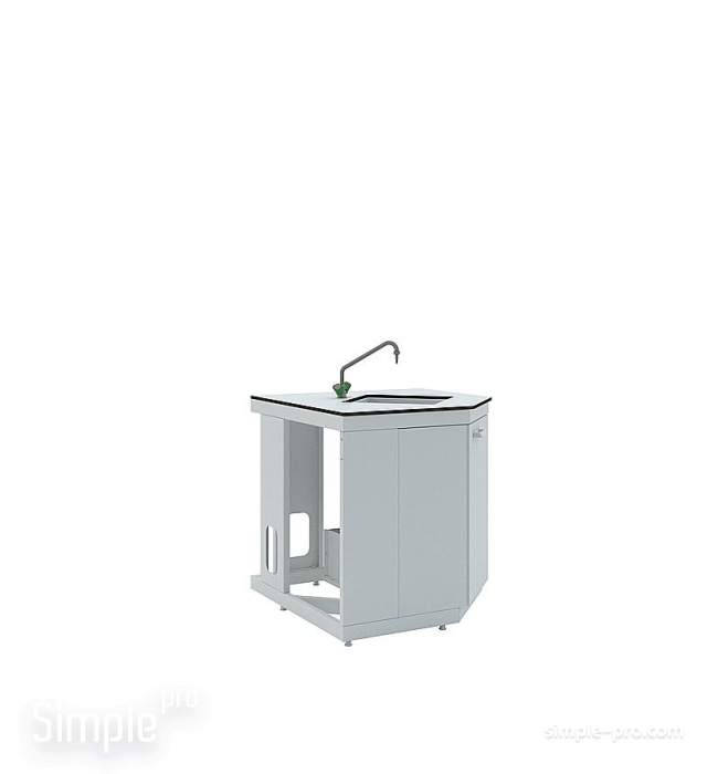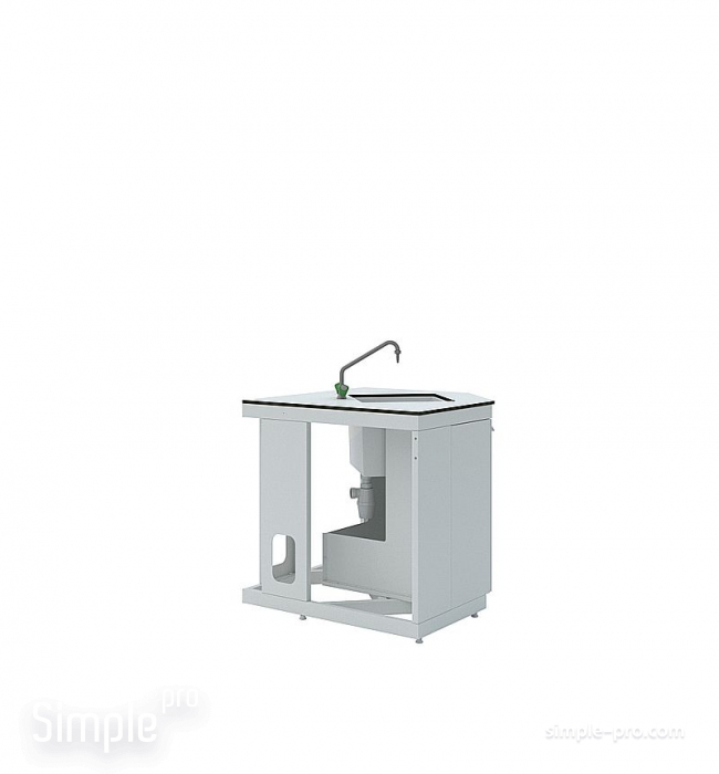 Представляет собой вариант лабораторного стола, оснащенного сливной раковиной, смесителем и тумбой. Органично сочетается с другими лабораторными столами (установленными в ряд), образуя единое визуальное и рабочее пространство. Опционально может комплектоваться раковинами из нержавеющей стали и монолитной керамики.