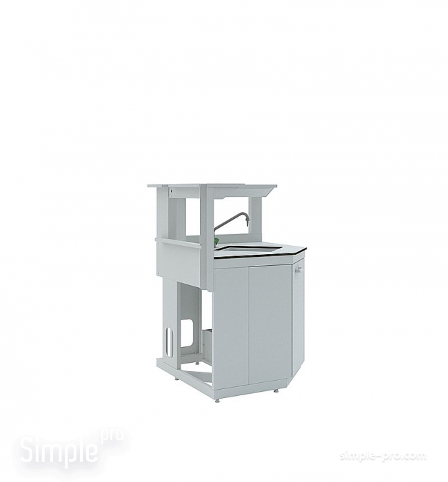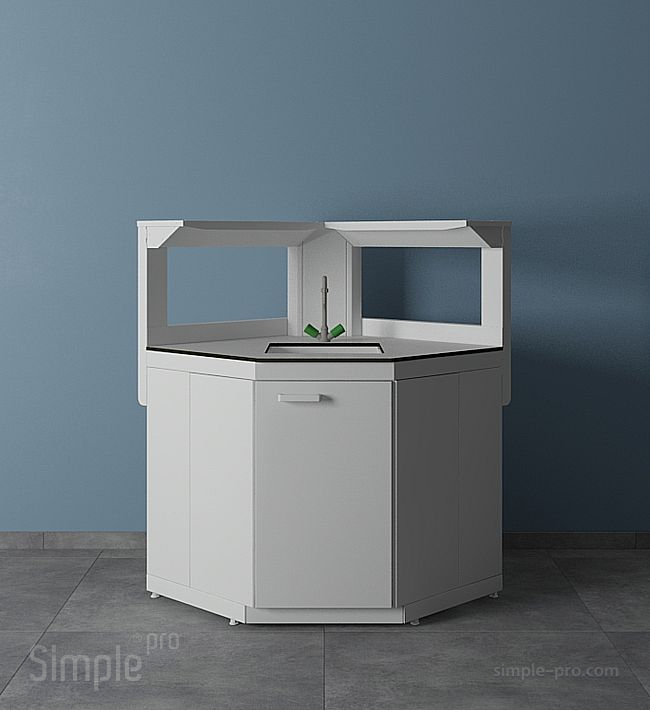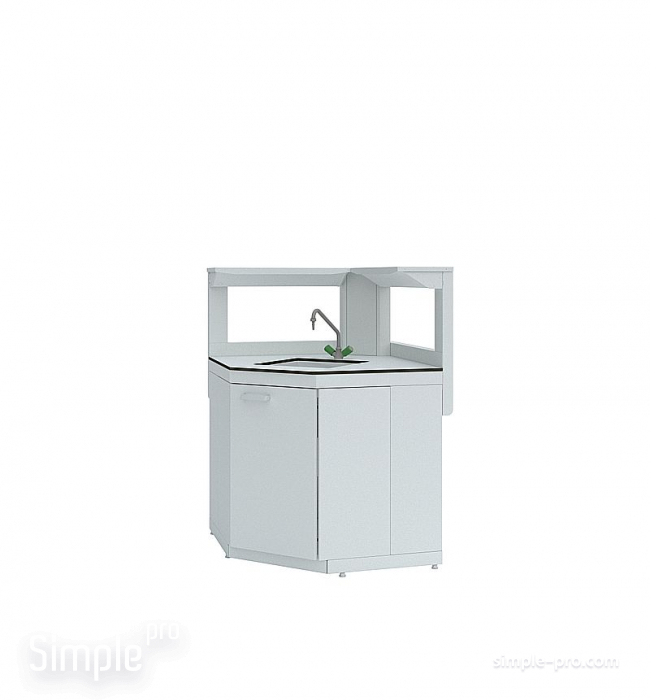 Представляет собой вариант лабораторного стола, оснащенного сливной раковиной, смесителем и тумбой. Органично сочетается с другими лабораторными столами (установленными в ряд), образуя единое визуальное и рабочее пространство. Опционально может комплектоваться раковинами из нержавеющей стали и монолитной керамики.