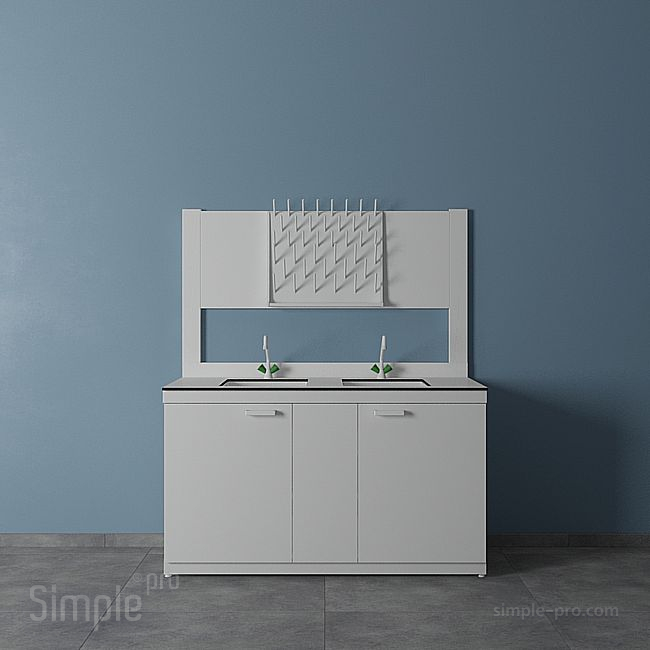 Купить моечный лабораторный стол с базовой комплектацией, включающей каркас, тумбу, столешницу, раковину и химический смеситель, предлагает компания Simple PRO.