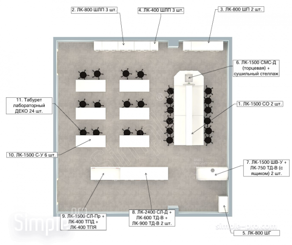 Наши специалисты бесплатно подготовят 3D-визуализацию вашего помещения и разработают проект расстановки мебели. Чтобы получить коммерческое предложение или ознакомиться с каталогом решений для образования, позвоните по телефону +7 (800) 600 36 73 или напишите на info+10016428@simple-pro.com.Изделия, использованные в проекте