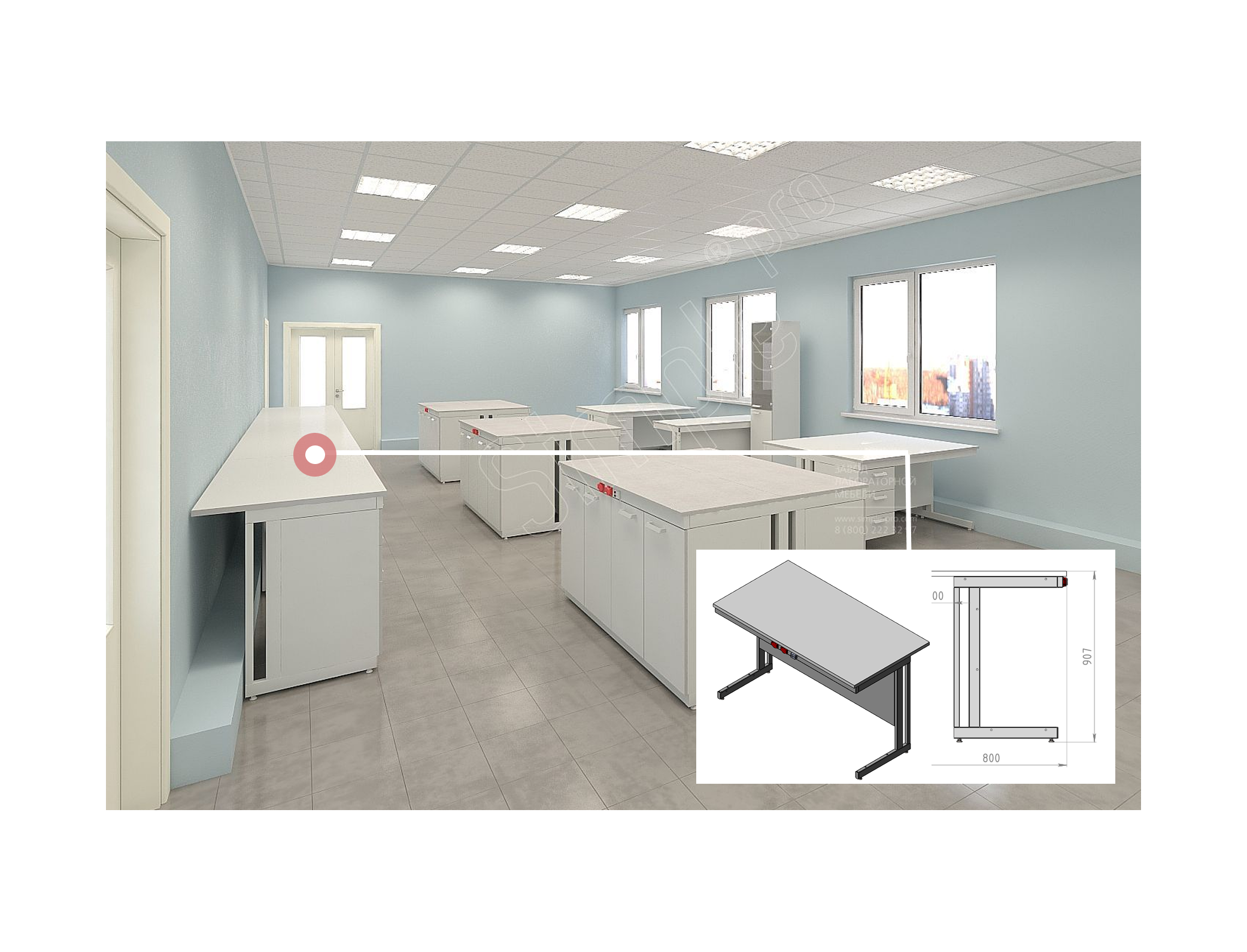- Конструкция островных столов предусматривала возможность подвода коммуникаций и установки розеток на передней панели, что обеспечивает удобство подключения поверяемого оборудования.