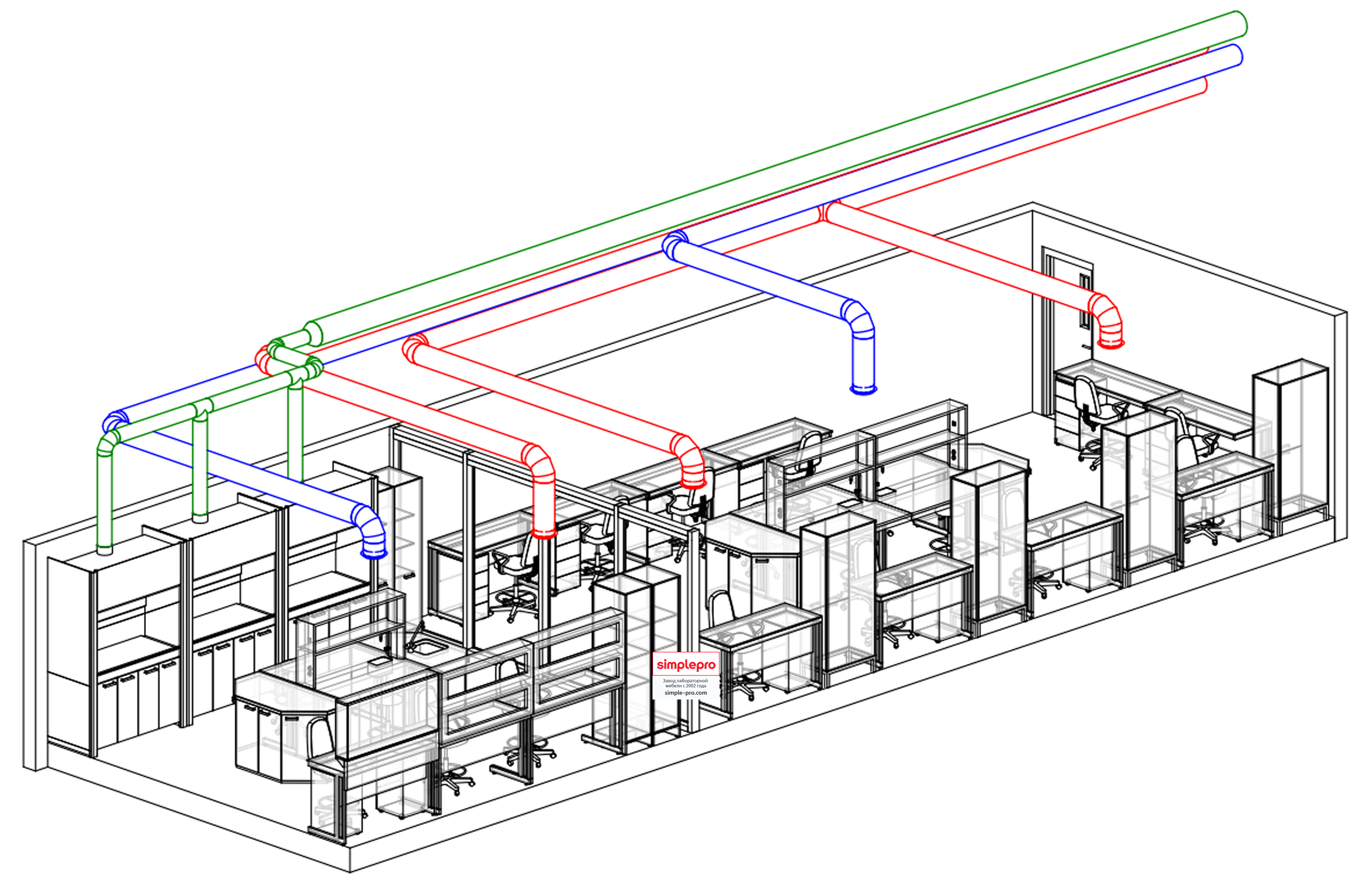 Для своих заказчиков мы бесплатно готовим 3D визуализацию будущей лаборатории.Пример визуализации метрологической лаборатории: