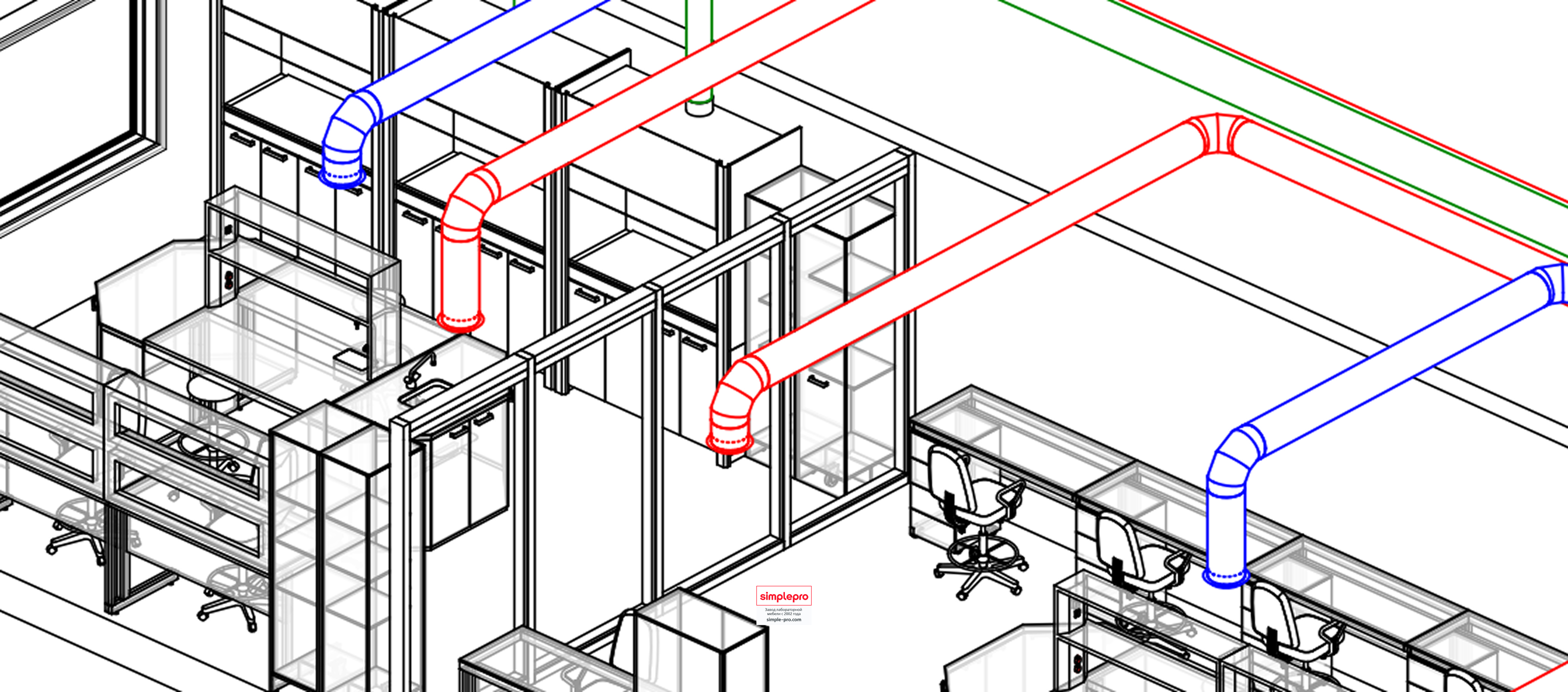 Наши специалисты подготовили типовой BIM-проект метрологической лаборатории, который легко адаптируется под задачи конкретного заказчика. Информационная модель показывает расположение мебели, точки подключения электропитания, схему вентиляции и прокладку коммуникаций.