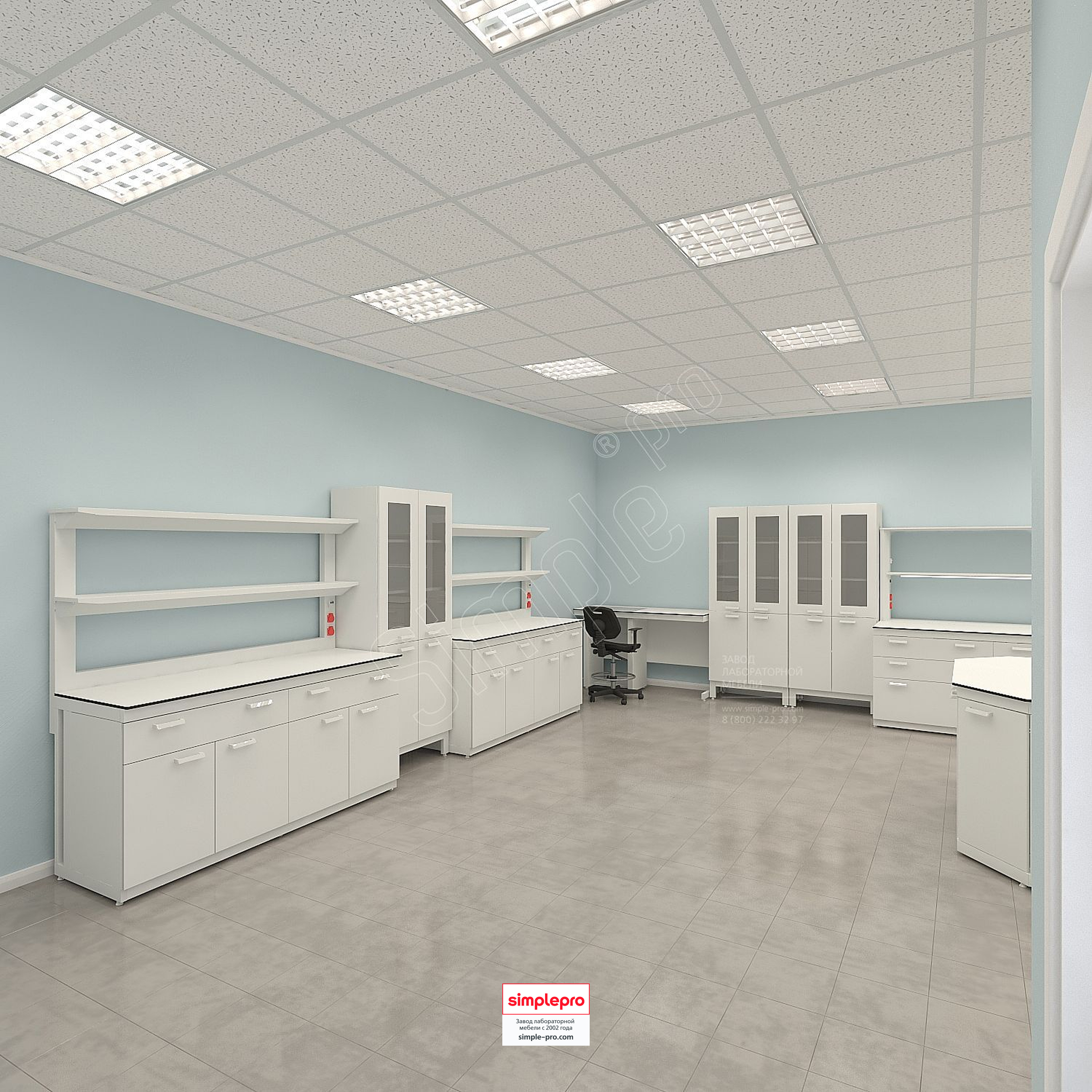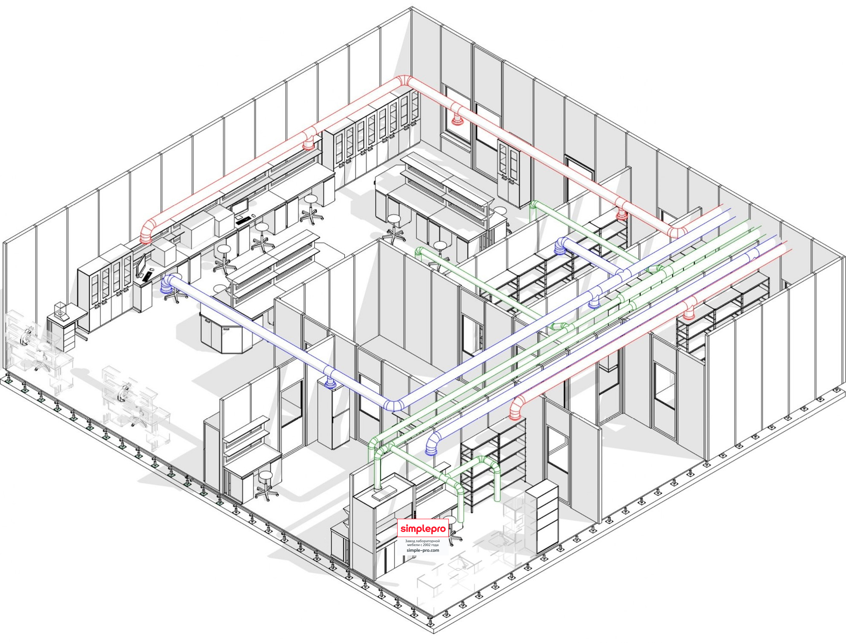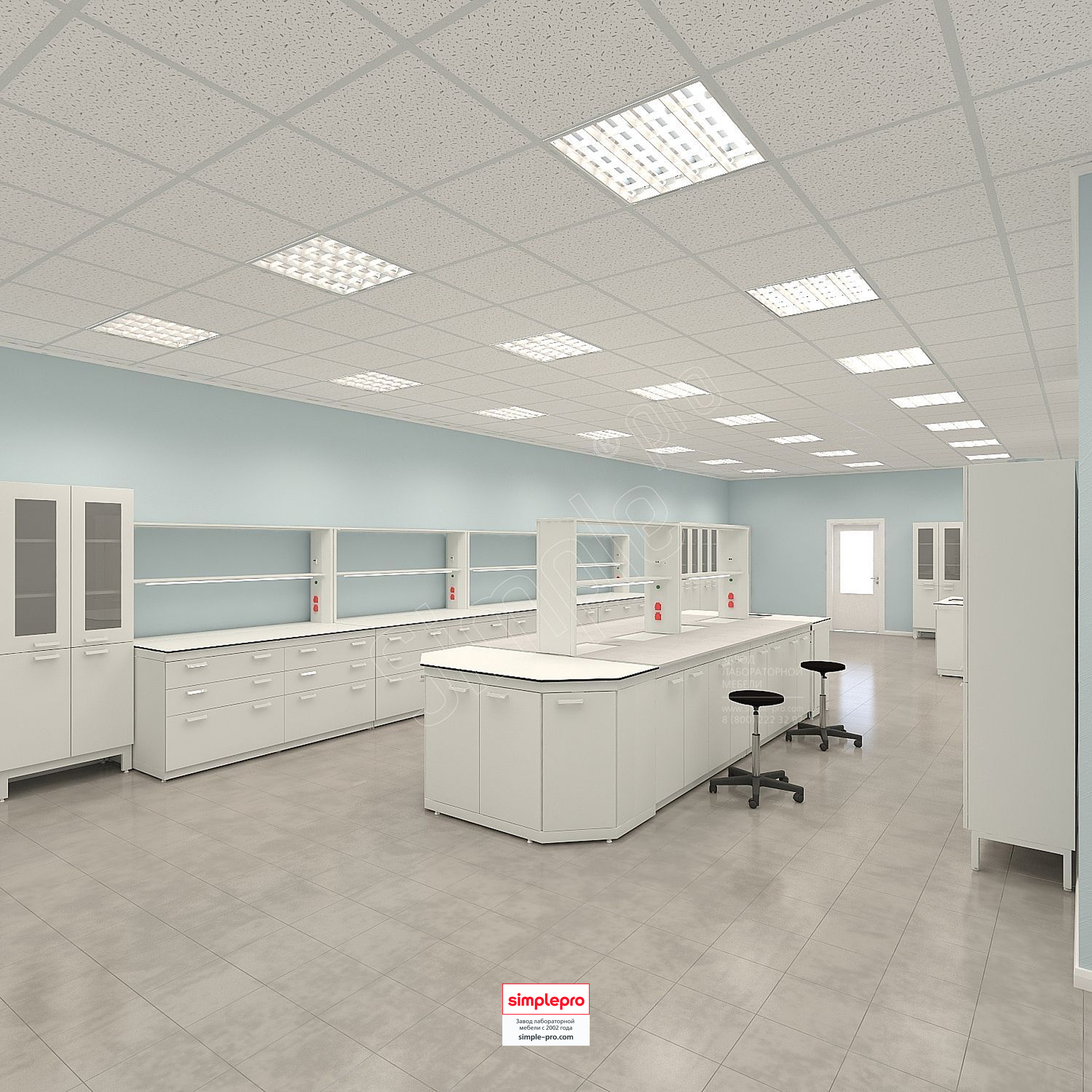 Для своих заказчиков мы бесплатно готовим 3D визуализацию будущей лаборатории.Пример визуализации микробиологической лаборатории: