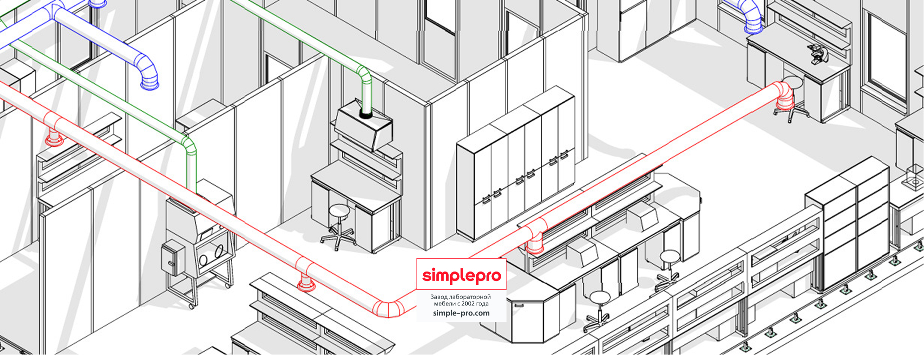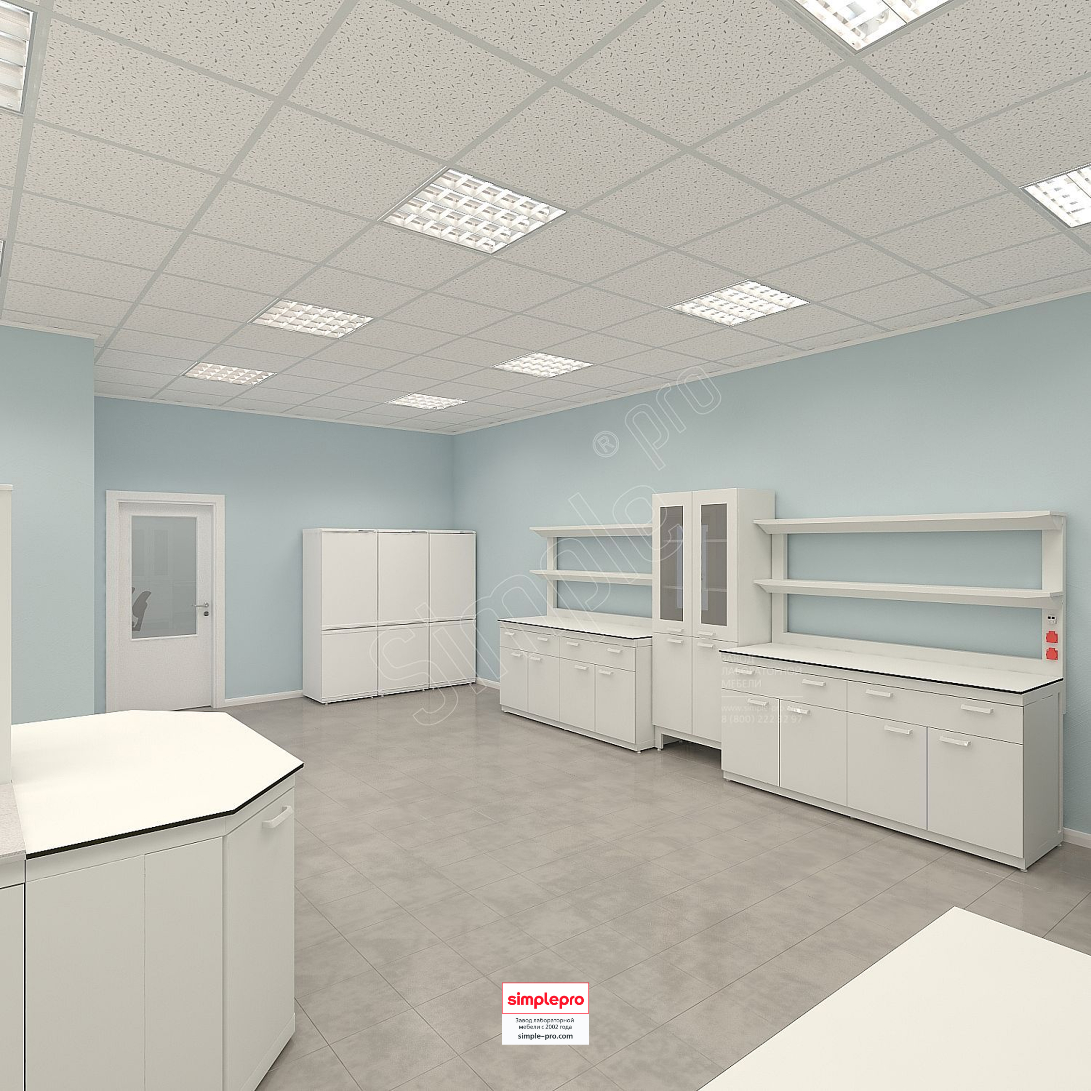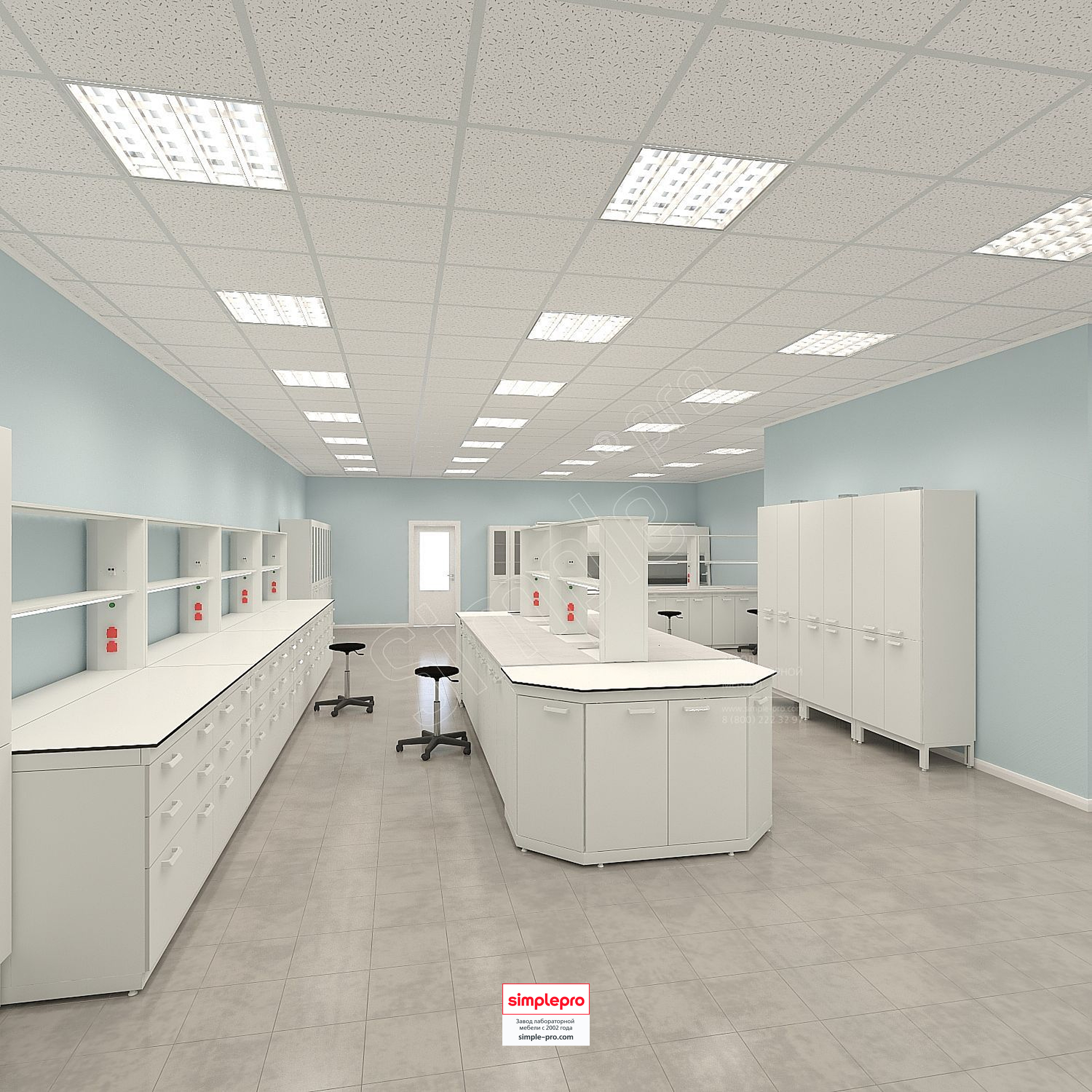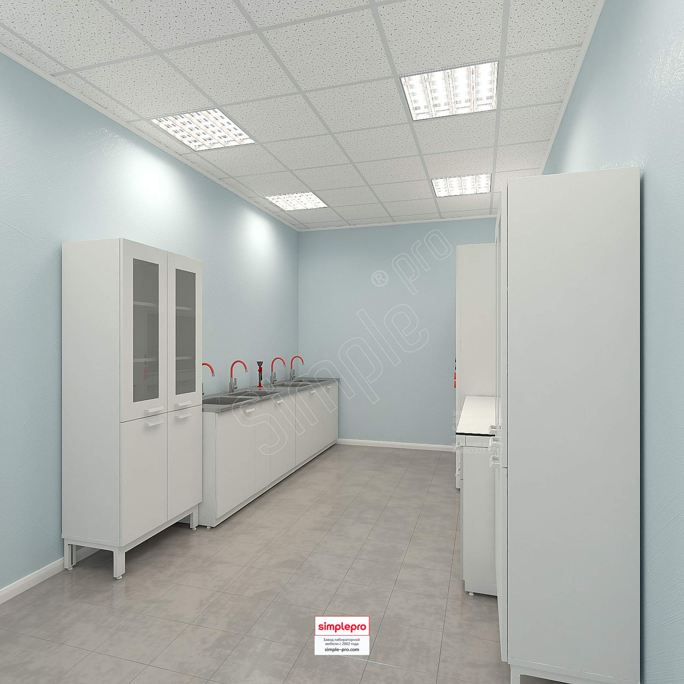 Для своих заказчиков мы бесплатно готовим 3D визуализацию будущей лаборатории.Пример визуализации микробиологической лаборатории: